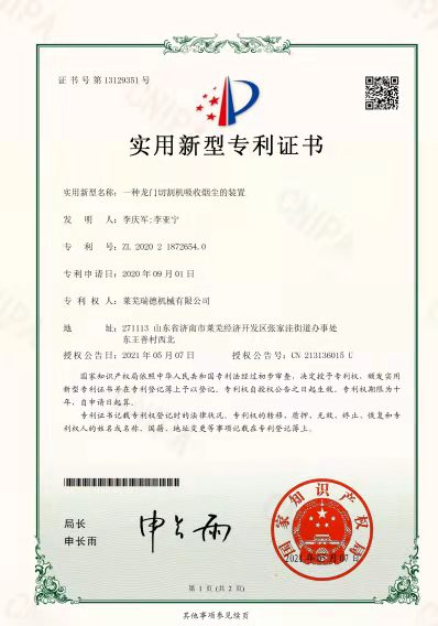 一种龙门切割机吸收烟尘的装置专利证书